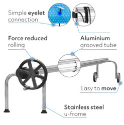 PoolCraft U Frame Pool Cover Roller – Wheel w. Force Reducing Device – Strings and Eyelets – 4.9m To 6.45m Long Tube