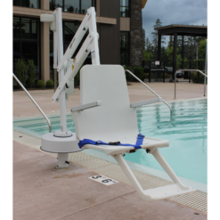 Designed for swimming facilities seeking to provide user-friendly access to their swimming pools. The Splash! Lift installs into your pool deck via anchor, and can be easily removed with the included caddy. Also available in an Extended Reach version for use on pools with gutter configurations requiring a longer reach.