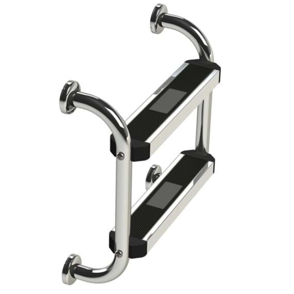The S.R. Smith Two-Step Pool Cover Ladder Flanged is available with 2-step, 3-step, 4-step, or 5-step and is made from 316L marine grade stainless steel.
