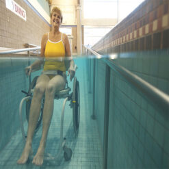 Essential for facilities utilising a ramp, zero-depth entry or movable floor. The MAC is built specifically for use in aquatic environments with a powder coated stainless steel frame to resist corrosion and a swing away arm for easy transfer.