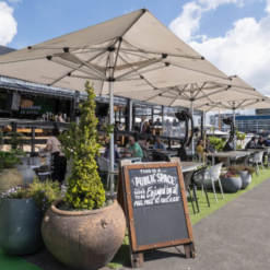 The SU10 works exceptionally well in clusters and can be paired with a zip-on rain gutter to create a sheltered outdoor space for your guests, regardless of the weather. This industrial-grade parasol can also serve as a market umbrella, offering shade at food trucks or sales stalls. The UV-protective fabric ensures your guests are shielded from the harsh sun, while the umbrella’s waterproof design and wind resistance mean it stands up to rain and gusty conditions.
