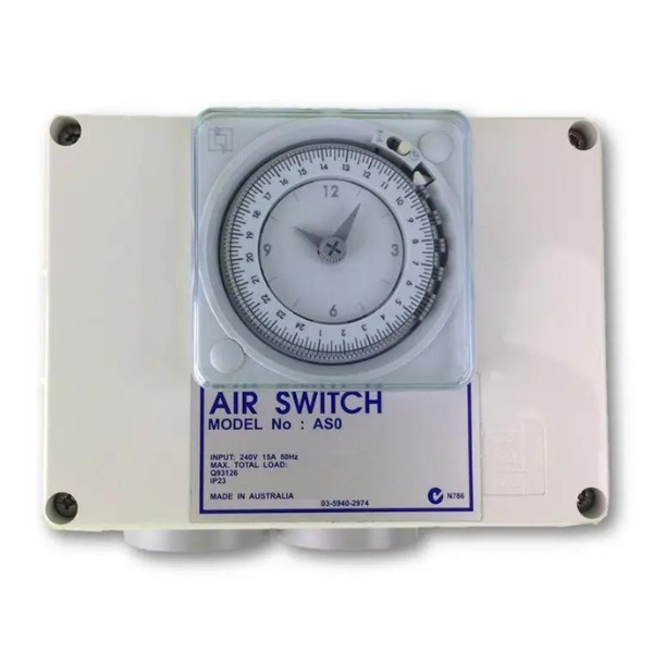 - Double Outlet Air Switch Box with Time Clock. 15amp total load