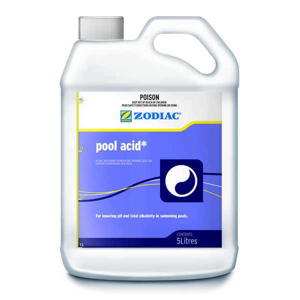 Zodiac Liquid Pool Acid will lower the pH and total alkalinity in swimming pools and spas.