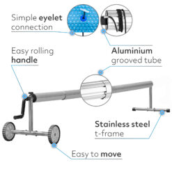 PoolCraft T Frame Pool Cover Roller – Handle Strings and Eyelets 3m to 5.7m Long Tube