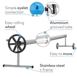 PoolCraft T Frame Pool Cover Roller – Wheel Strings and Eyelets – 4.9m to 6.45m Long Tube